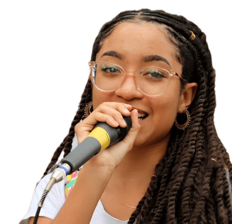 Uma jovem mulher negra soteropolitana que quer mostrar para o mundo todo a sua voz, suas ideais, suas experiências de vida, seus sonhos, suas lutas e suas esperanças sobre a vida de pessoas negras de sua comunidade e de todo o globo.